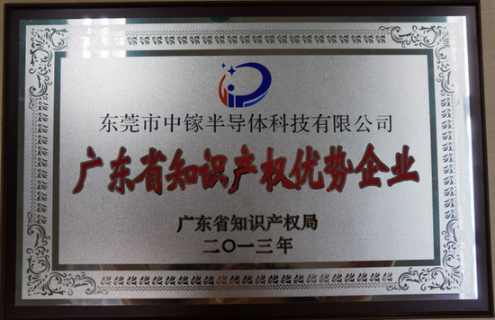 2013年东莞市中镓半导体科技有限公司列入广东省知识产权优势企业。