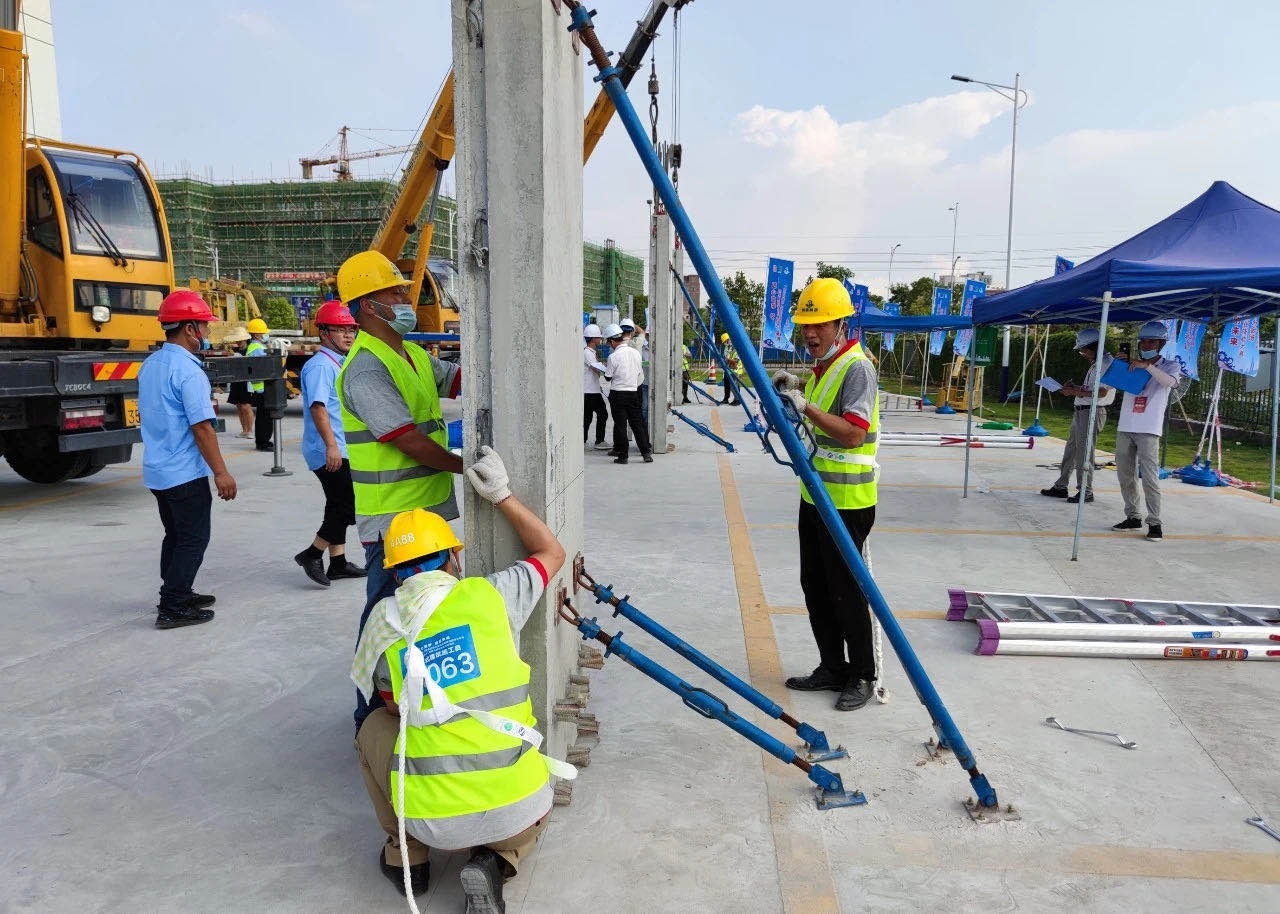 据介绍,本次竞赛由理论考试和实际操作两部分组成,分别占比30%与70%。其中,实操比赛聚焦于装配式建筑的生产、吊装、安全等重要环节,比赛内容专业化程度高,要求参赛人员具备全面的素质与技能,对装配式建筑人才自身实力的极大考验。