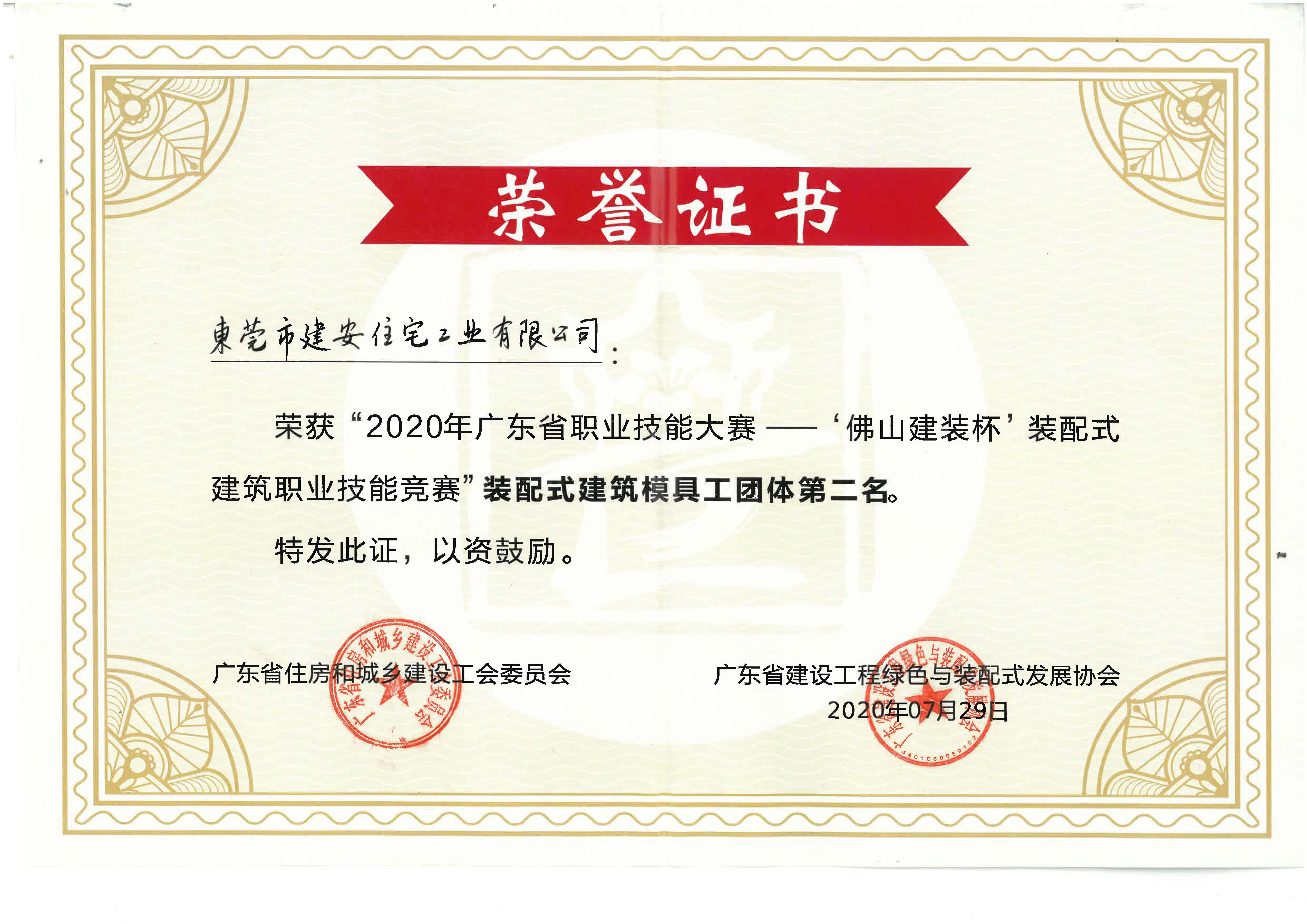 7月28日,由广东省住房和城乡建设厅指导,省住房和城乡建设工会委员会、省建设工程绿色与装配式发展协会联合主办的“广东省职业技能大赛——佛山建装杯”中,建安住工及参赛员工分别斩获装配式建筑模具工团体奖第二名,3位员工荣获装配式建筑模具工个人奖。